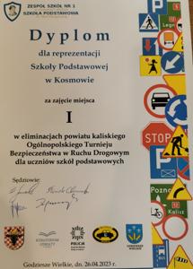 • I miejsce w Ogólnopolskim Turnieju Bezpieczeństwa Ruchu Drogowego.