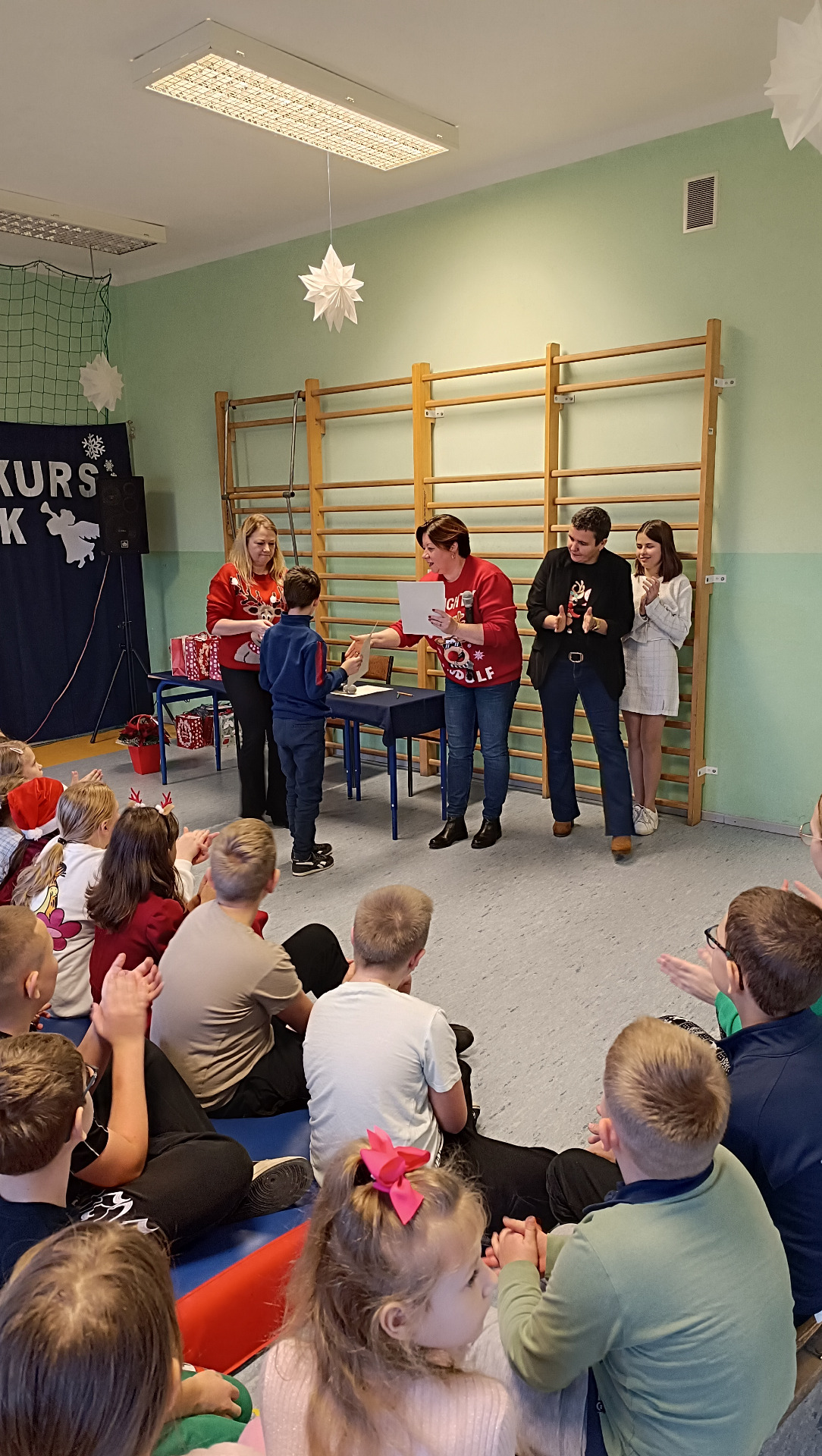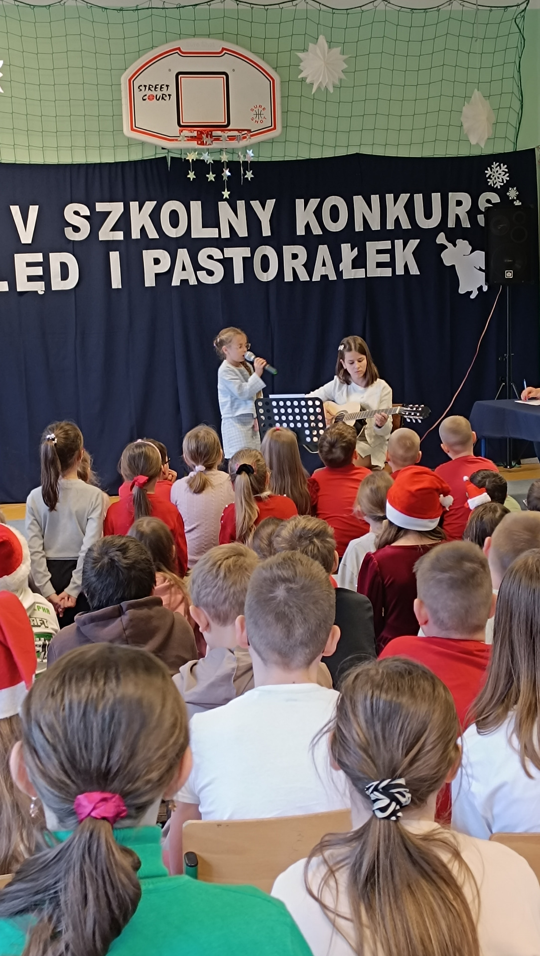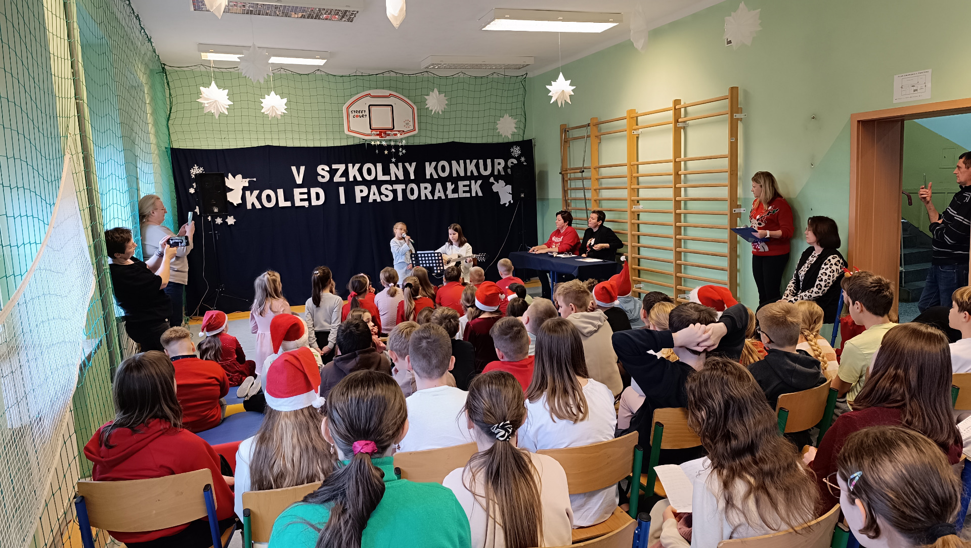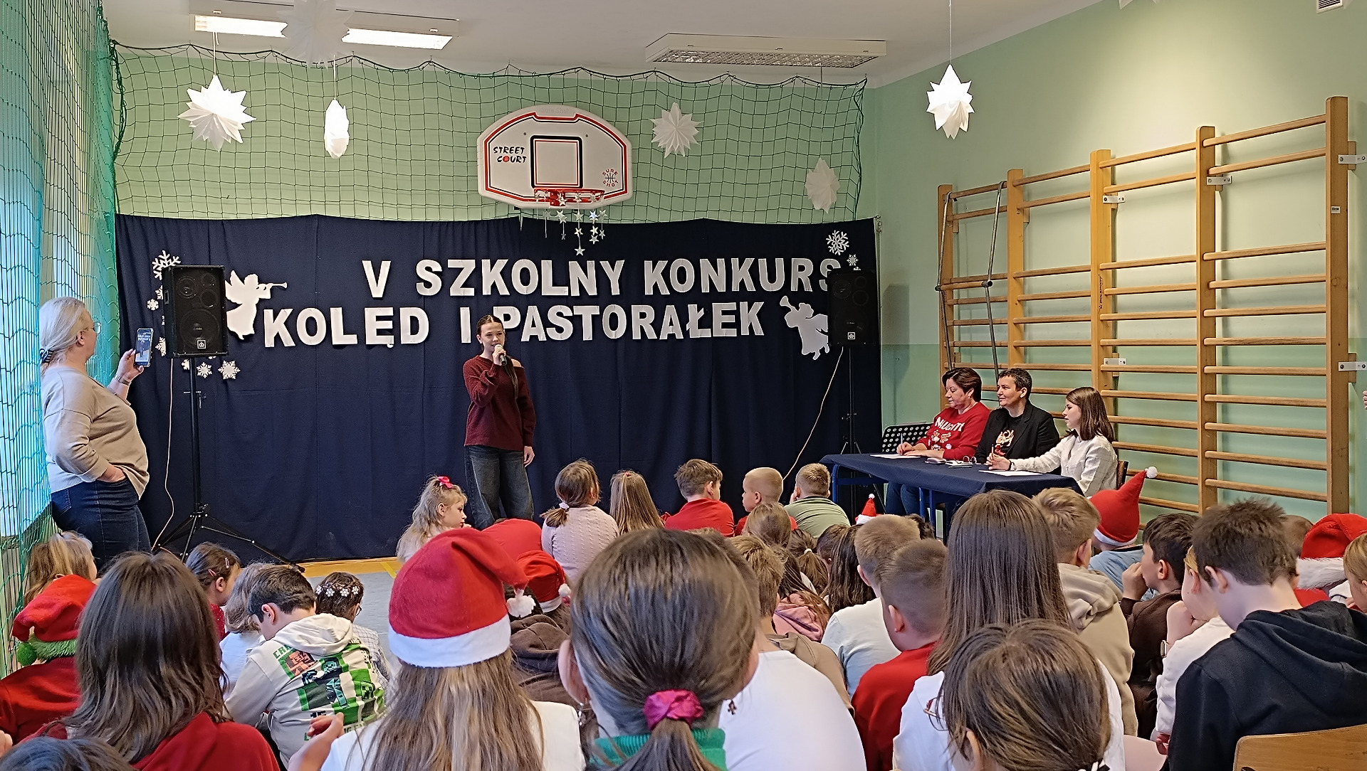 To już piąta edycja szkolnego konkursu wokalnego, którego głównym celem jest uwrażliwianie na piękno kolęd oraz podtrzymywanie tradycji ich śpiewania. 5 grudnia uczniowie pokazali zarówno swoje umiejętności wokalne, jak i gry na instrumentach. Jury wybierało zwycięzców w dwóch kategoriach wiekowych: klasy I - III oraz IV - VIII. Po raz kolejny została też przyznana nagroda publiczności. W skład naszej komisji weszły: p. Kinga Ballion, dyrektor naszej szkoły p. Beata Kaźmierczak oraz ubiegłoroczna zwyciężczyni- Lena Płuciennik.